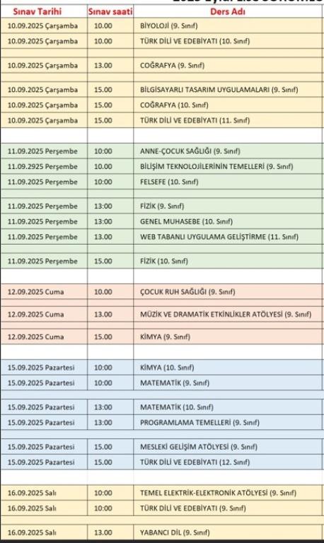 AHMET ATEŞ MESLEKİ VE TEKNİK ANADOLU LİSESİ SORUMLULUK SINAV TAKVİMİ